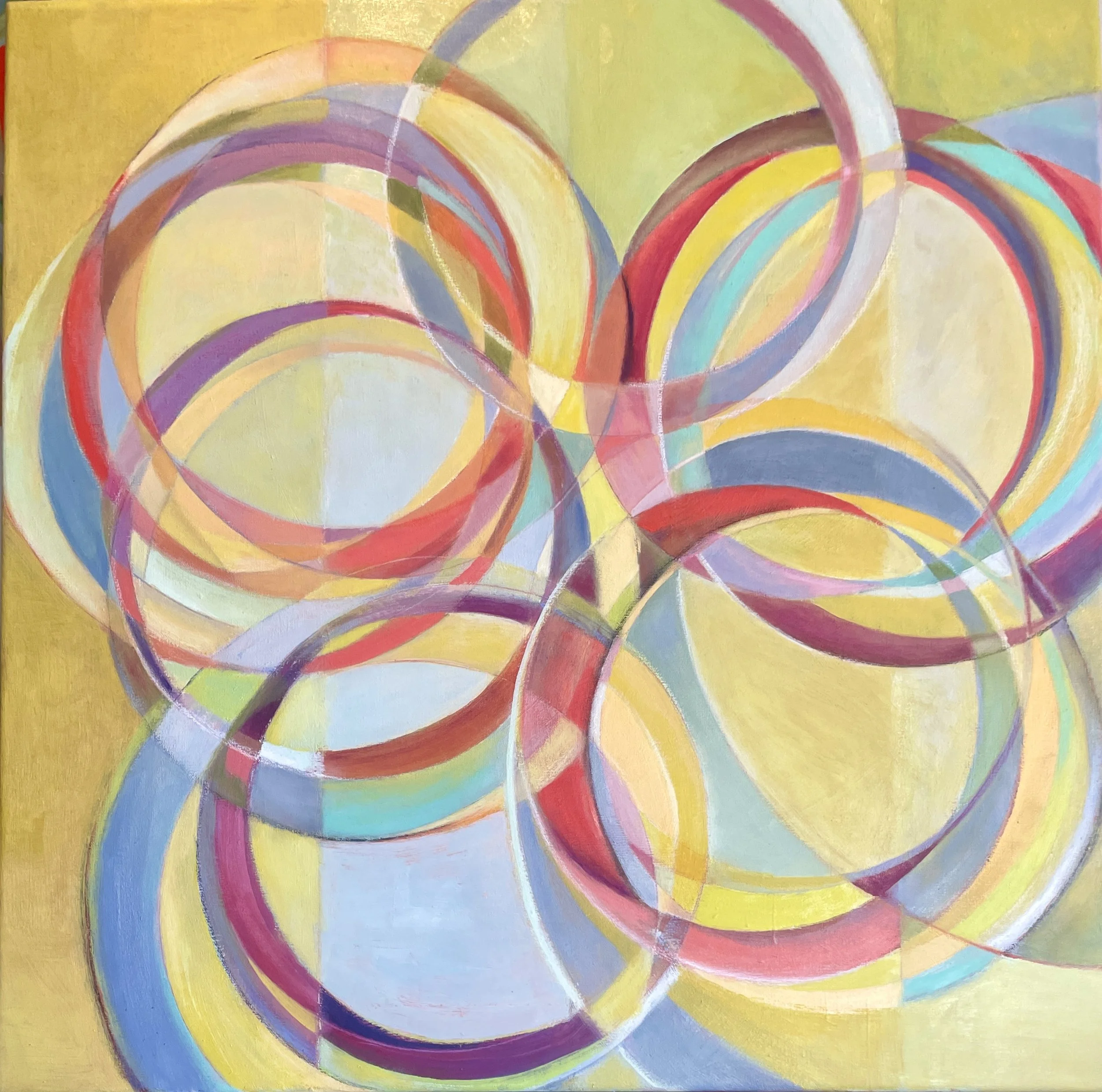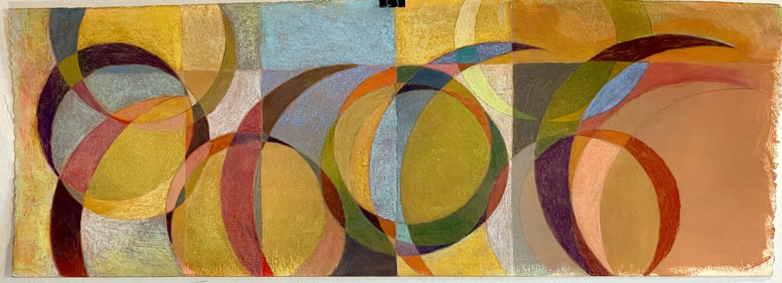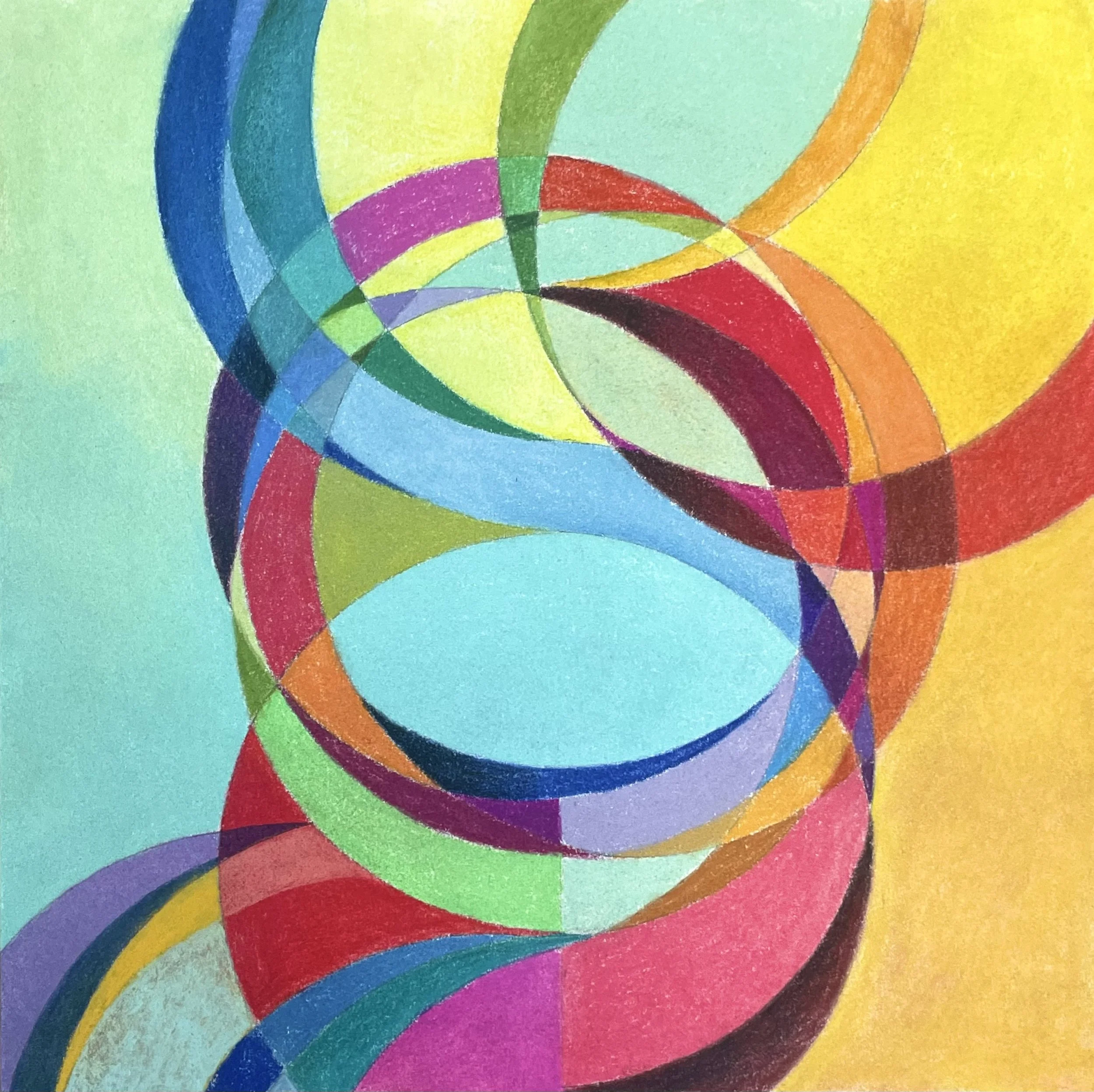Going in circles? My fascination with geometry, abstraction, visual rhythms, and the energy of color has been with me since I started drawing and creating. Along the way I have ventured into realism, figurative and pictorial imagery but I circle back to the power of shape and color, to energetic frequencies and a kind of visual music.