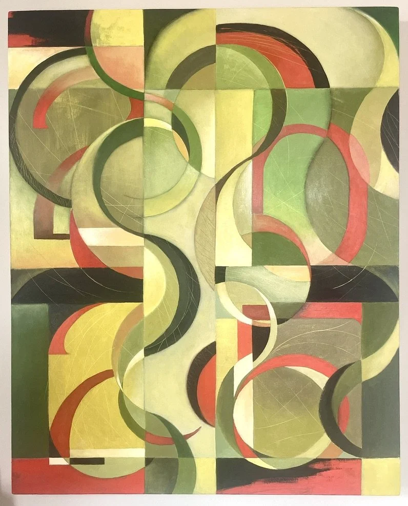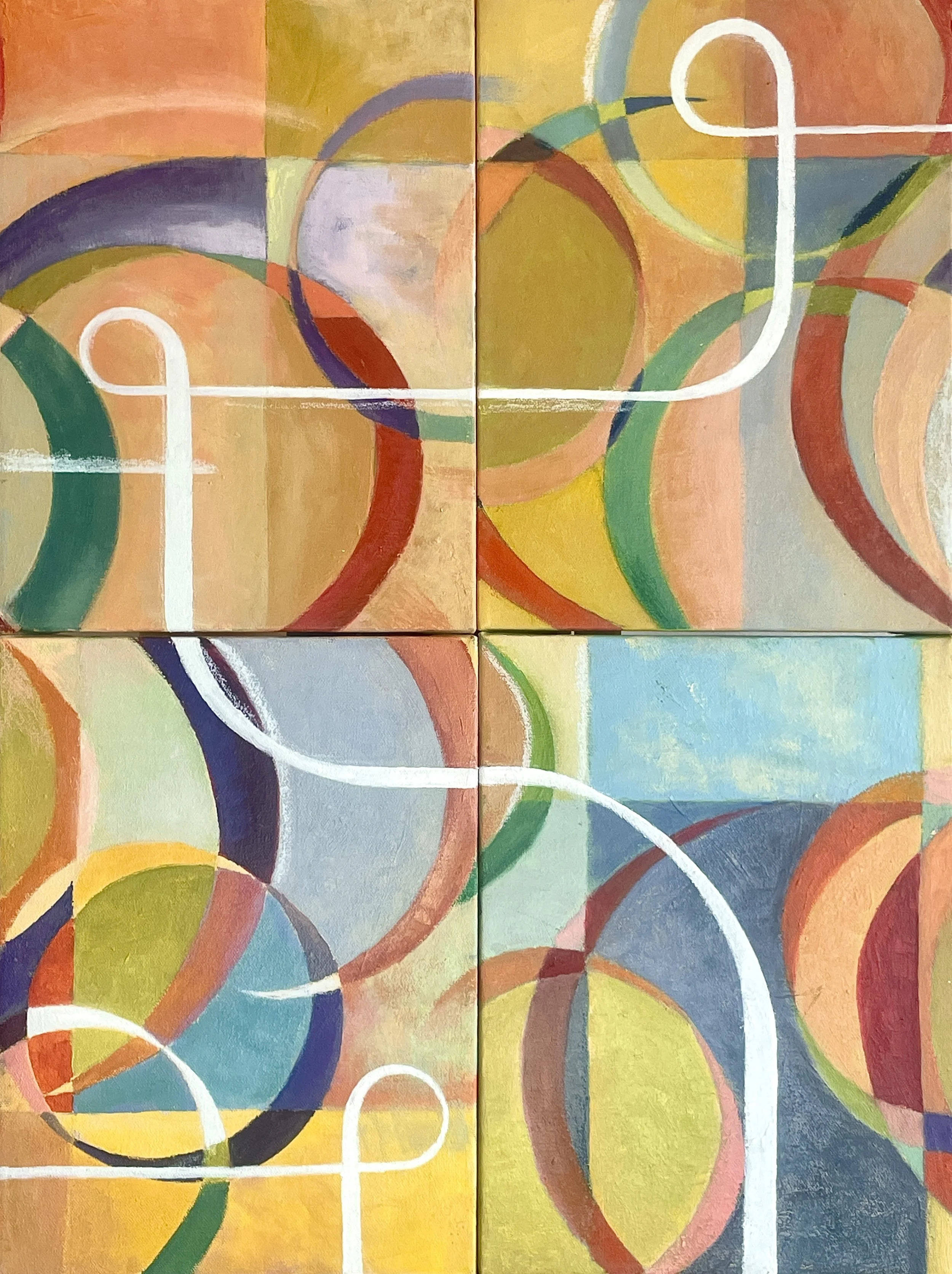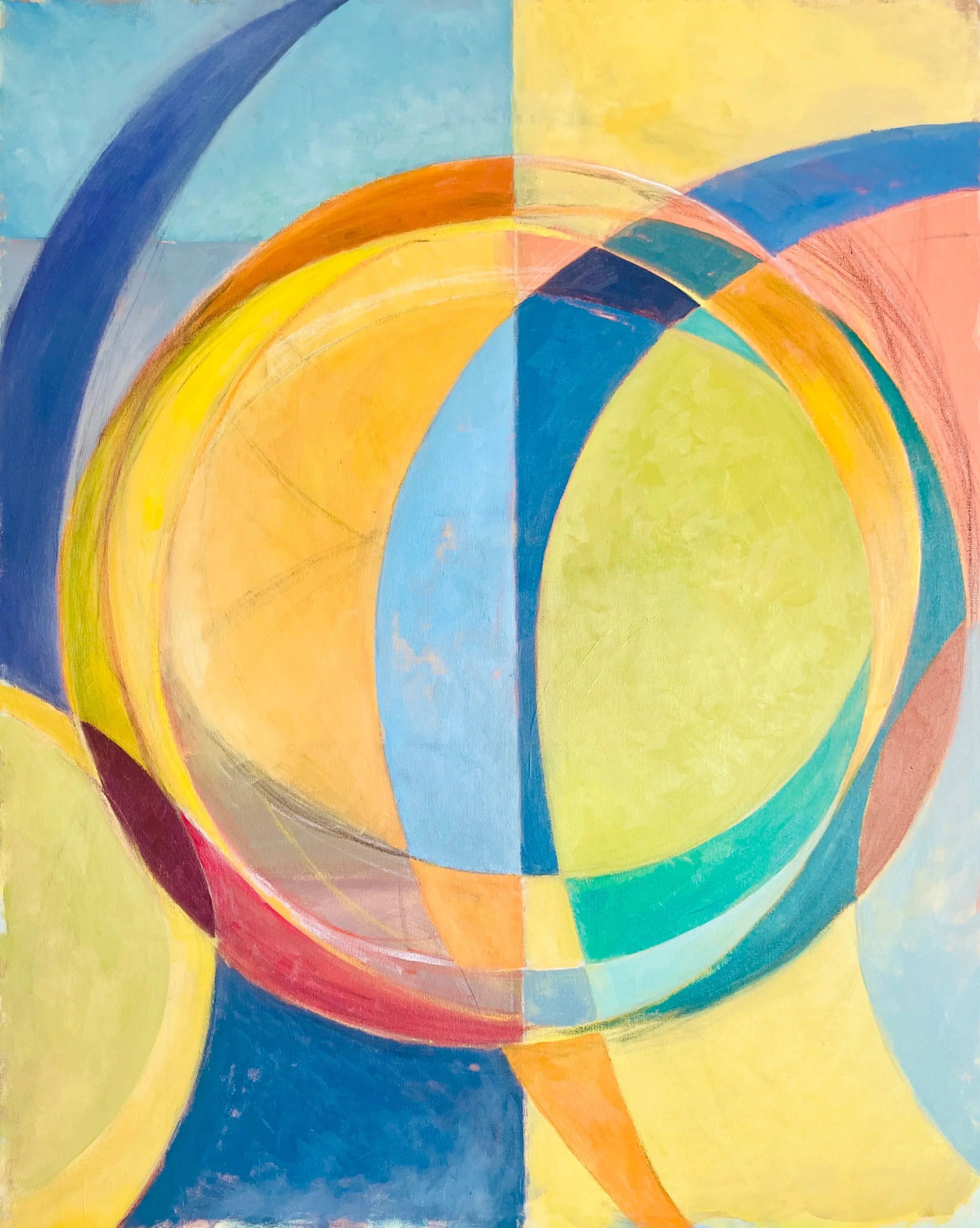 Going in circles? My fascination with geometry, abstraction, visual rhythms, and the energy of color has been with me since I started drawing and creating. Along the way I have ventured into realism, figurative and pictorial imagery but I circle back to the power of shape and color, to energetic frequencies and a kind of visual music.