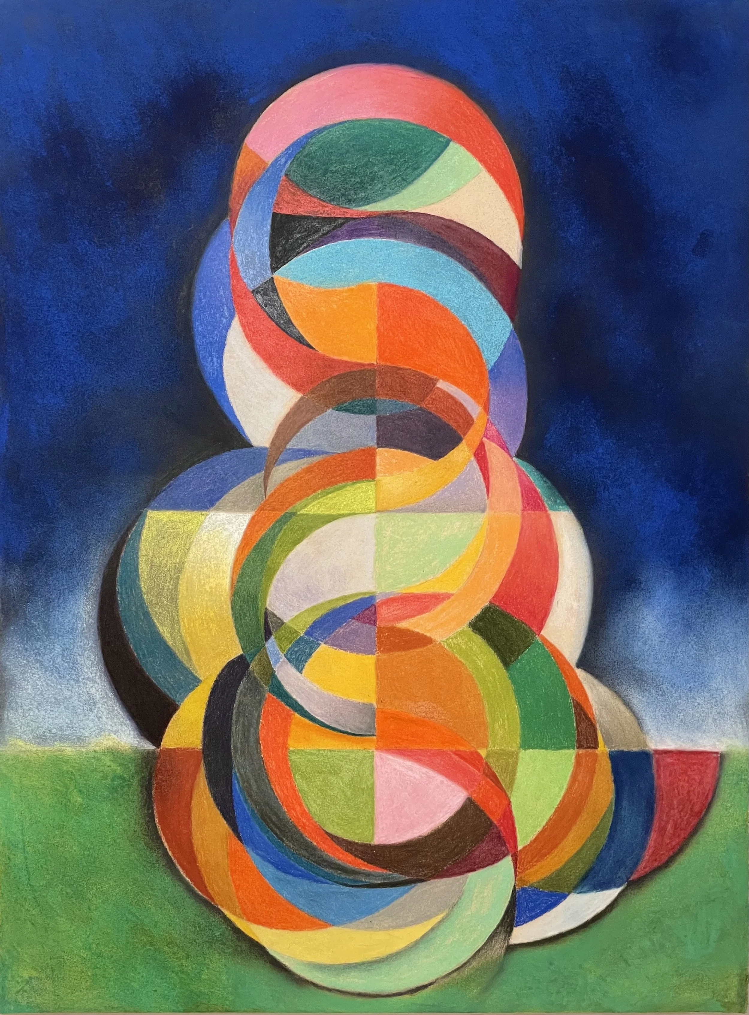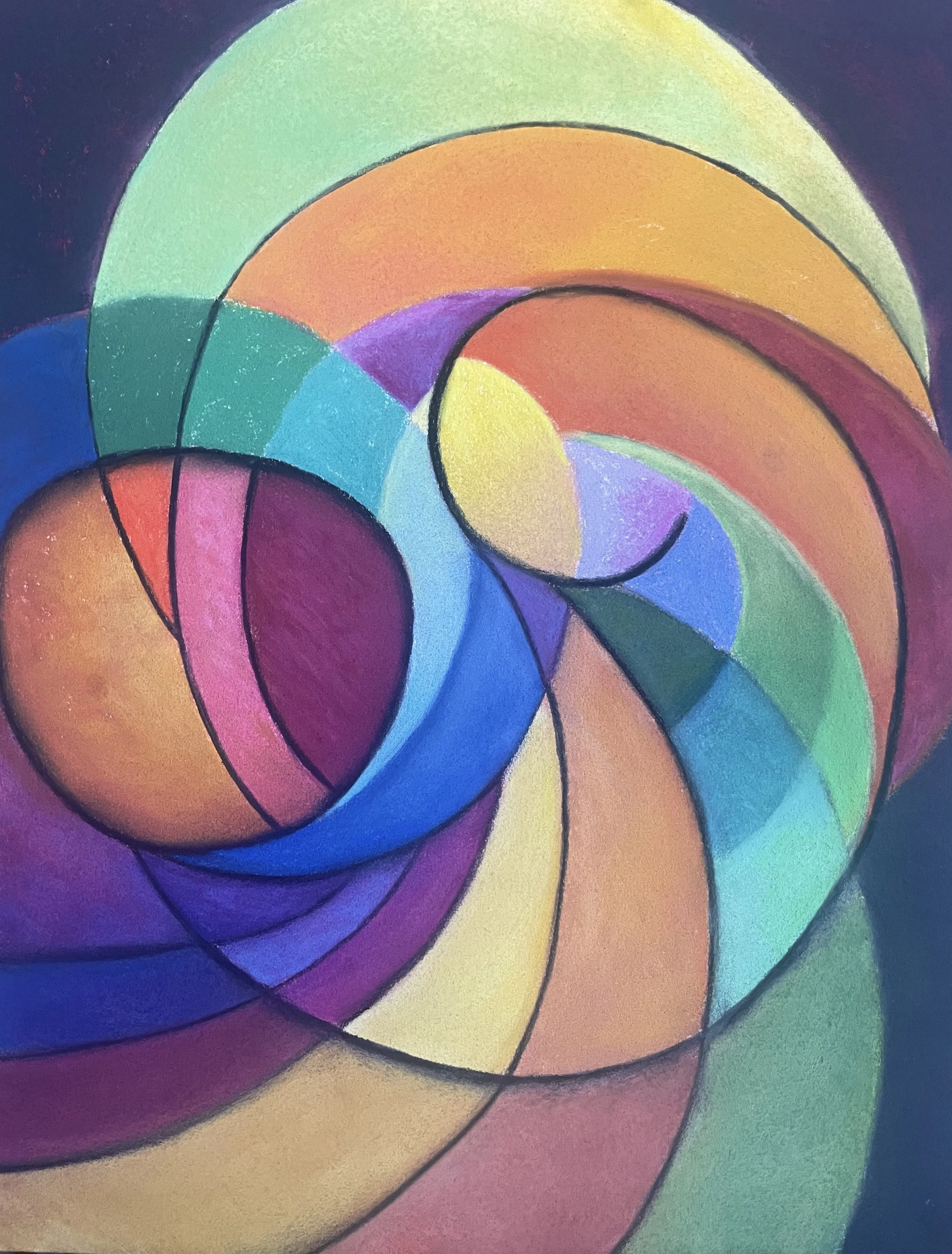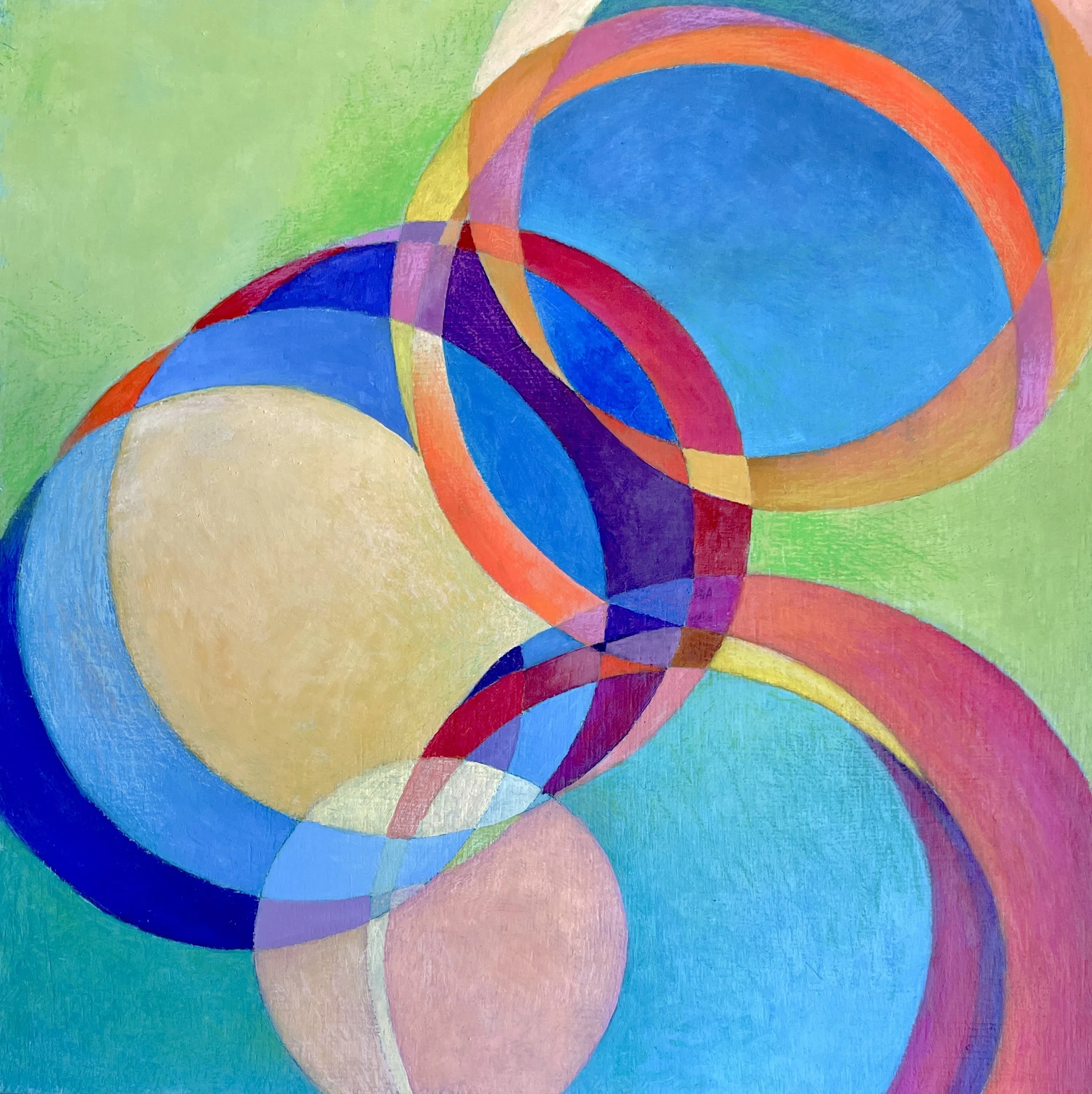 What’s up with the circles? A fascination with abstraction, geometry, visual rhythms, and the energy of color has been with me since I first dipped a brush into paint. And although I have ventured into realism and pictorial images at times, I always return to the “Orphist”* ideal of the power of shape and color to express energy frequencies and a kind of visual music.